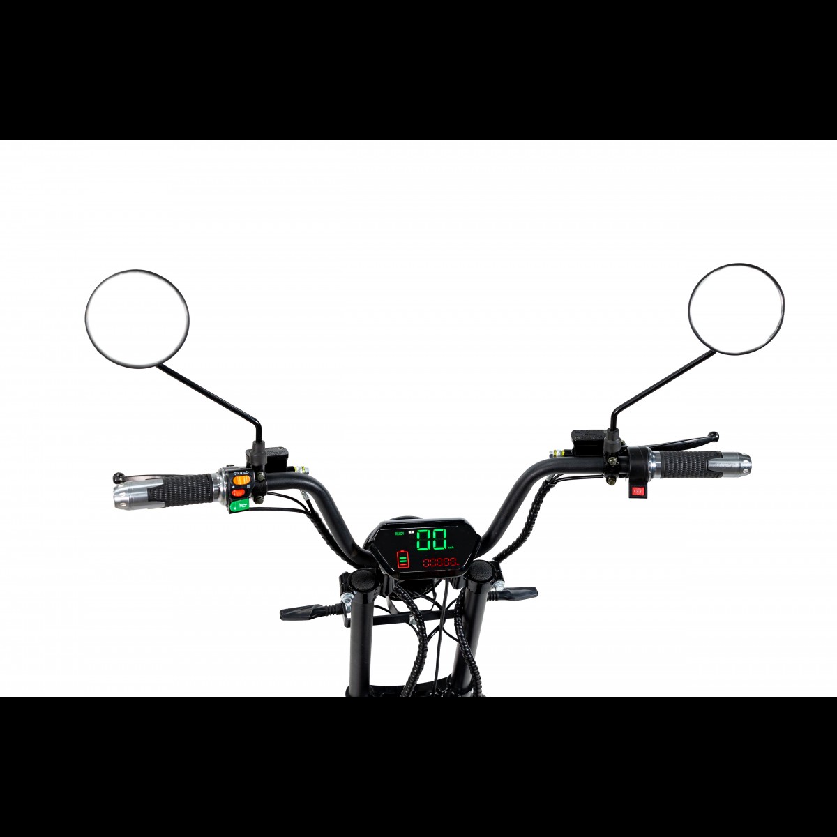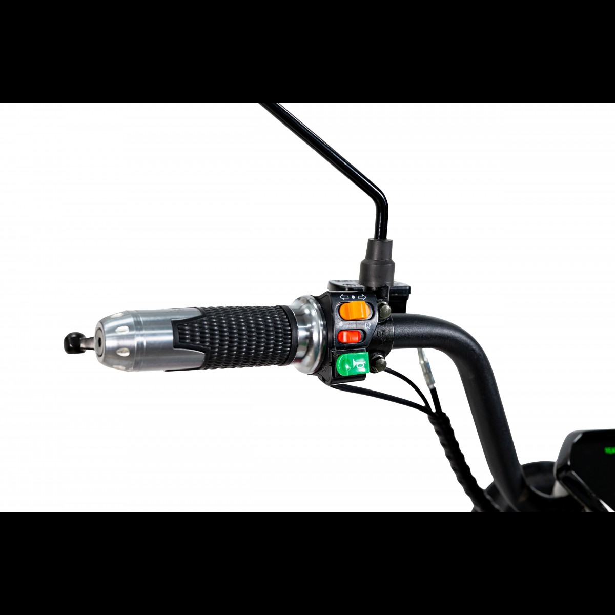 На кермі розміщено інформативний LCD-дисплей, ручку газу з перемикачами, у тому ж числі на задній хід, дзеркала.