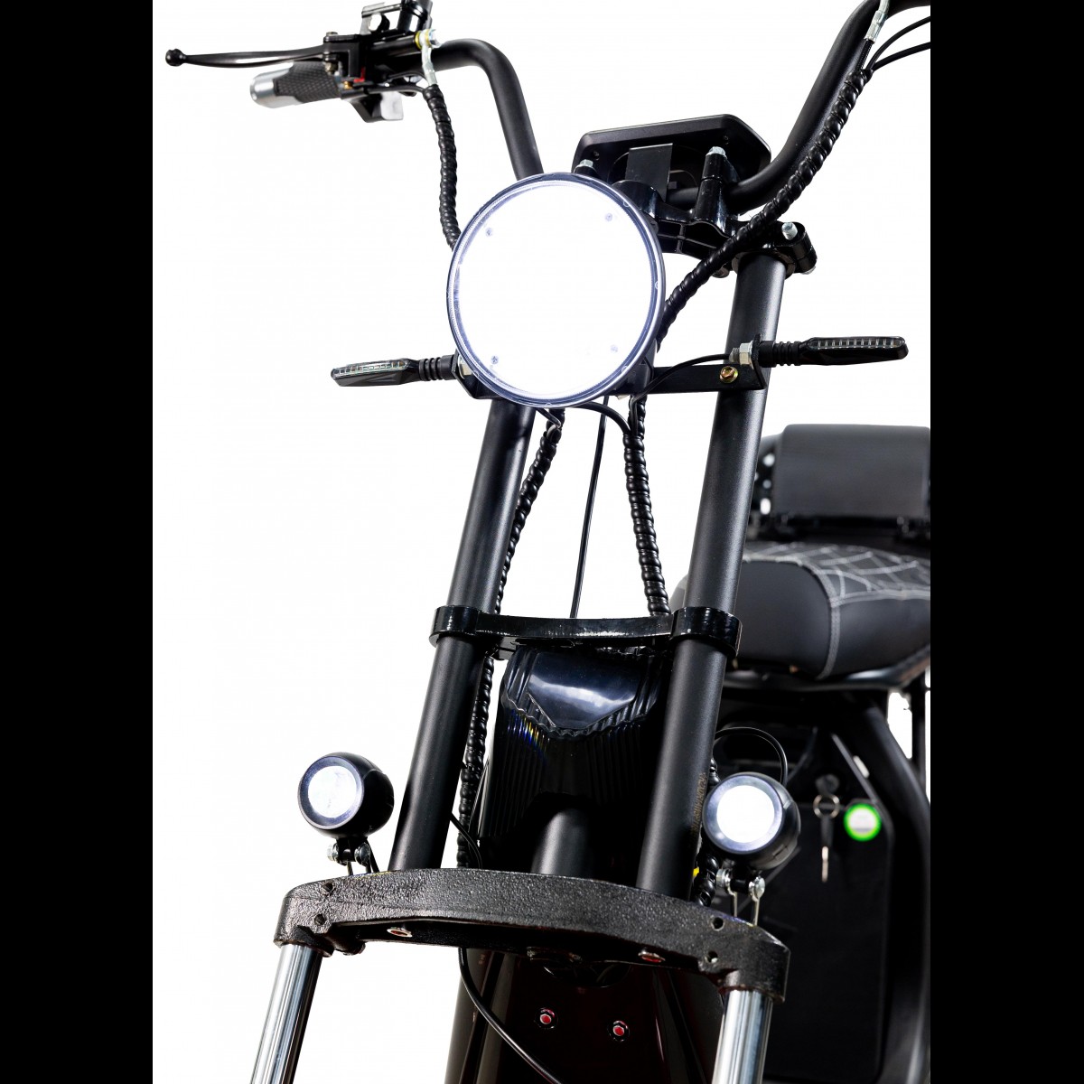 а потужне мотоциклетне світлодіодне світло, задні поворотники та стоп-сигнал додає впевненості при пересуванні у вечірній час.