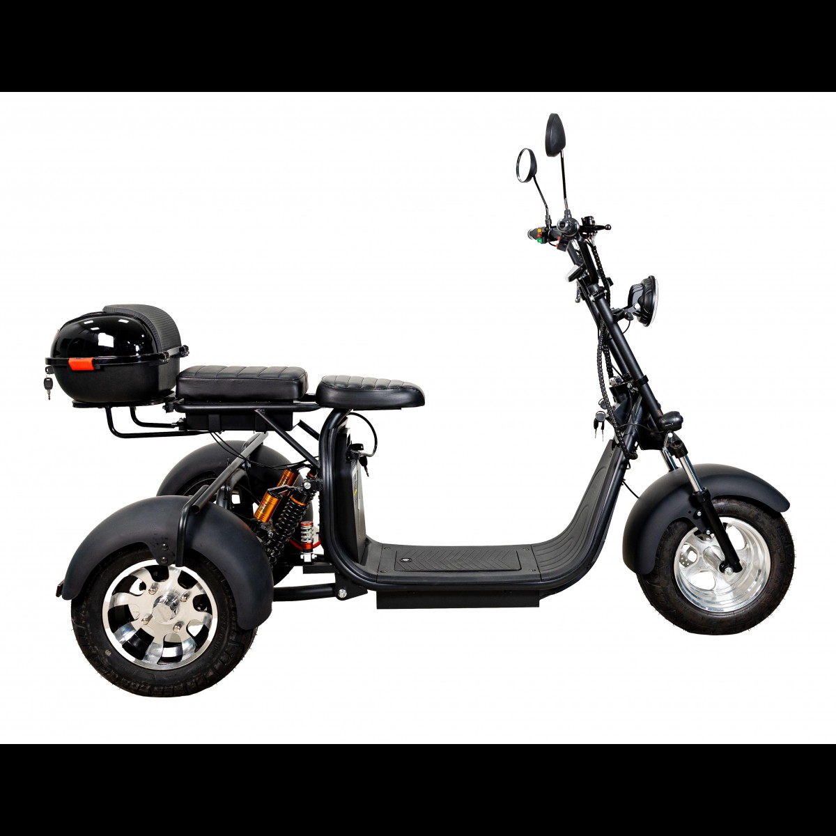 Триколісний, двомісний електроскутер Atlas Hunter 2500W з металевим каркасом та зручною низькою рамою чудово підійде для жінок, людей похилого віку або ж для поїздок на риболовлю чи в ліс за грибами.