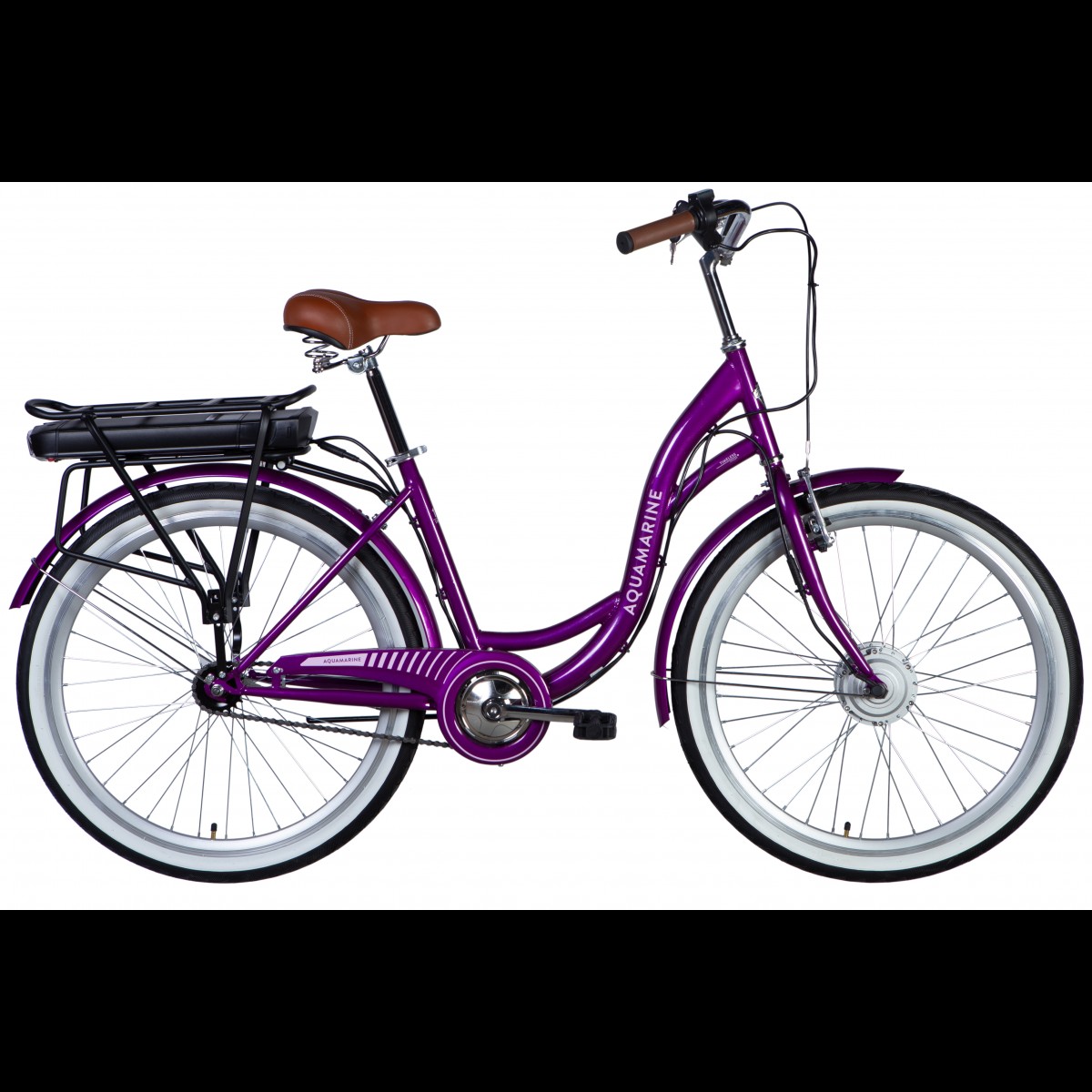 Великі колеса електровелосипеда (розмір 26 дюймів) та зручна алюмінієва рама типу "дамка"