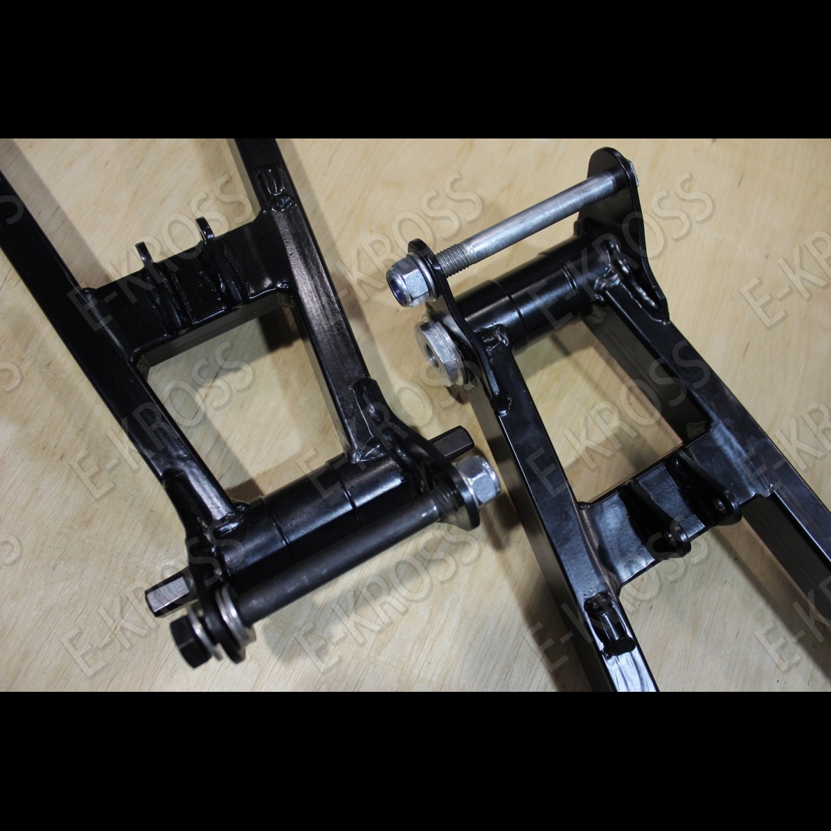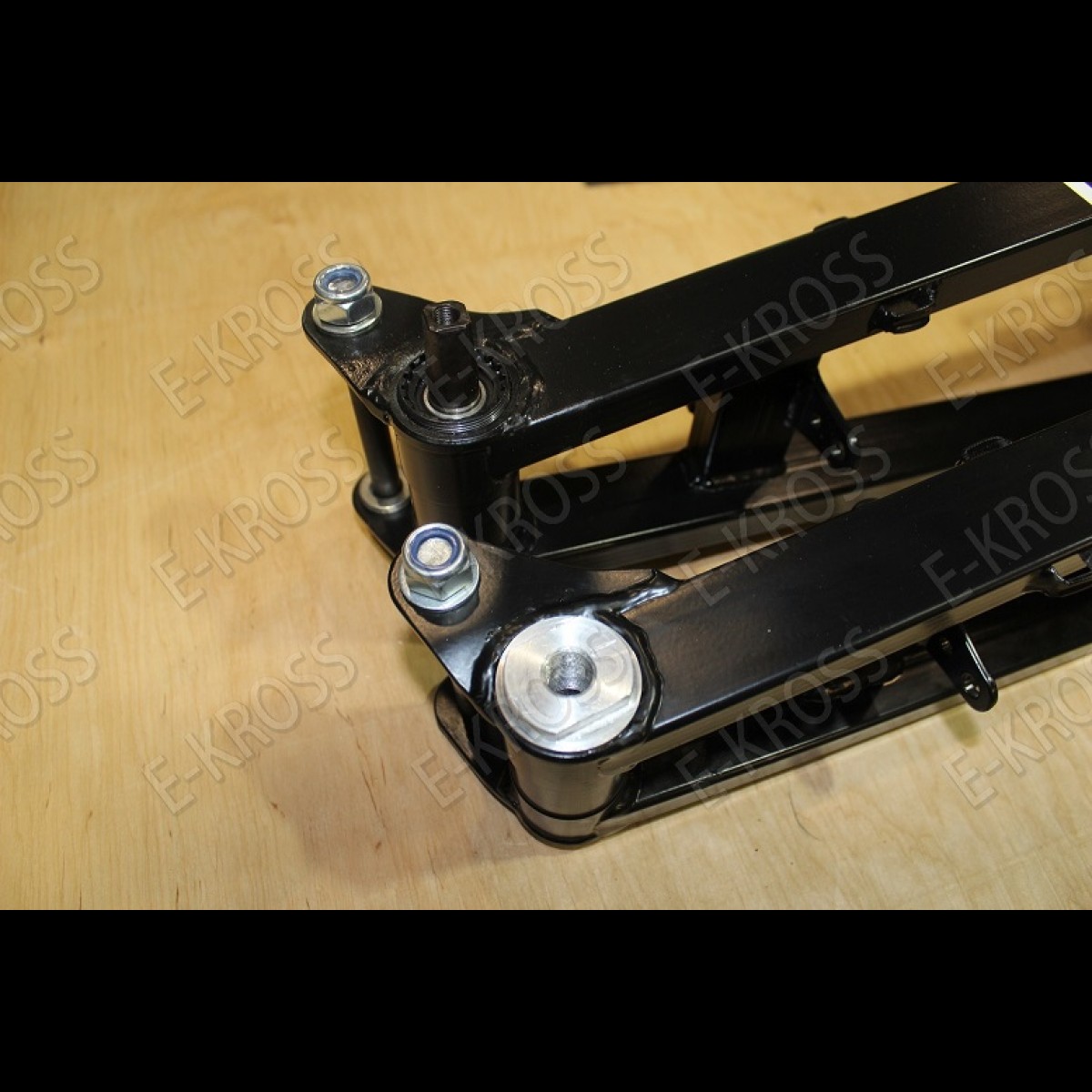 - Амортизатор рекомендується використовувати пружинно-масляний, довжиною 200-240мм по осях. Якщо колеса використовуються 17-18 дюймів мото - то 240мм, якщо 26 дюймів вело - то 220мм.