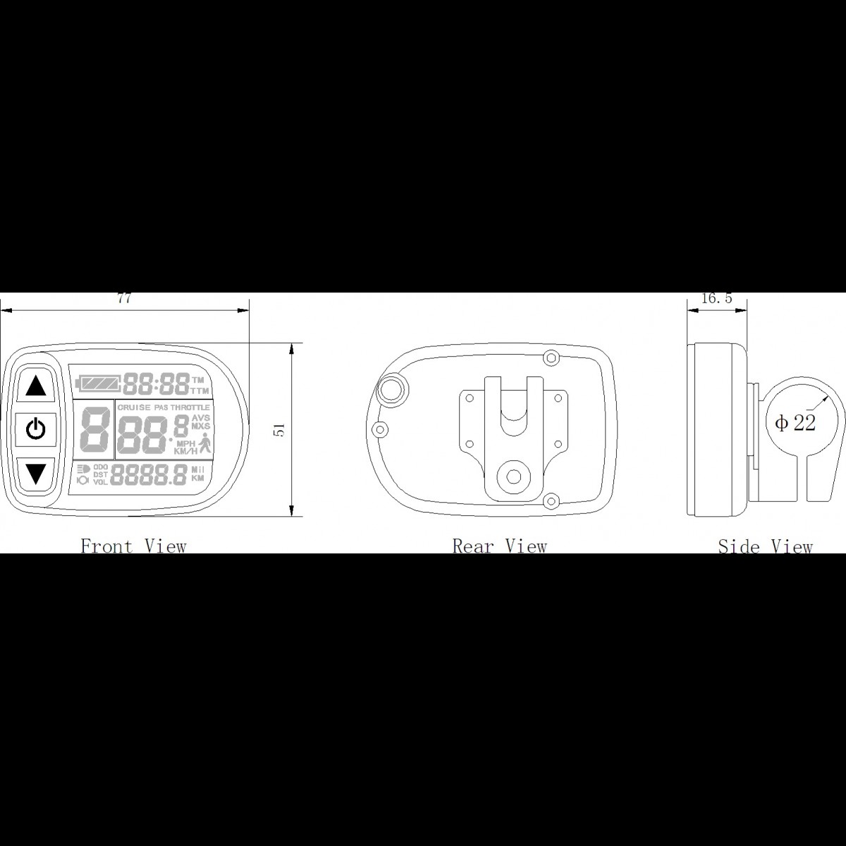 • Дисплей автоматично визначає напругу живлення (36, 48 V)