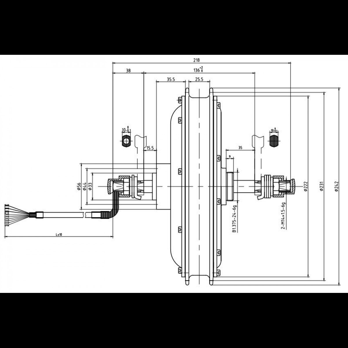 | Діаметр мотора | з фланцями для установки спиць: 242 мм по центрах отворів для спиць: 231 мм |