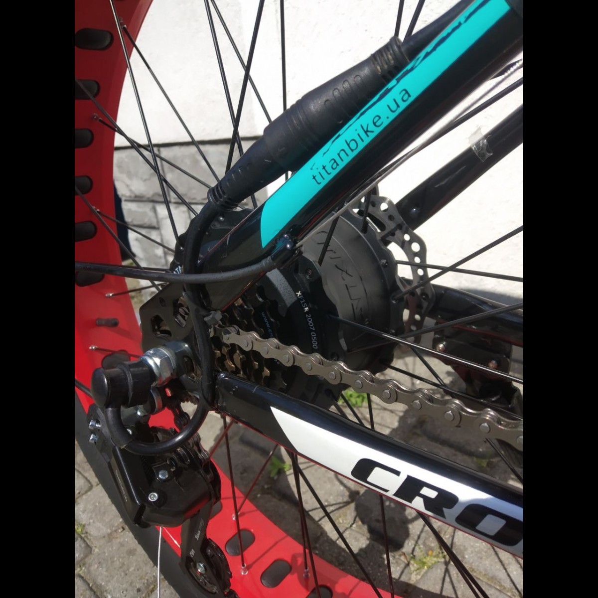 Редукторне мотор-колесо потужністю 1200 ватт розраховане під найбільш поширені 36-спиць обода діаметром до 29 ".