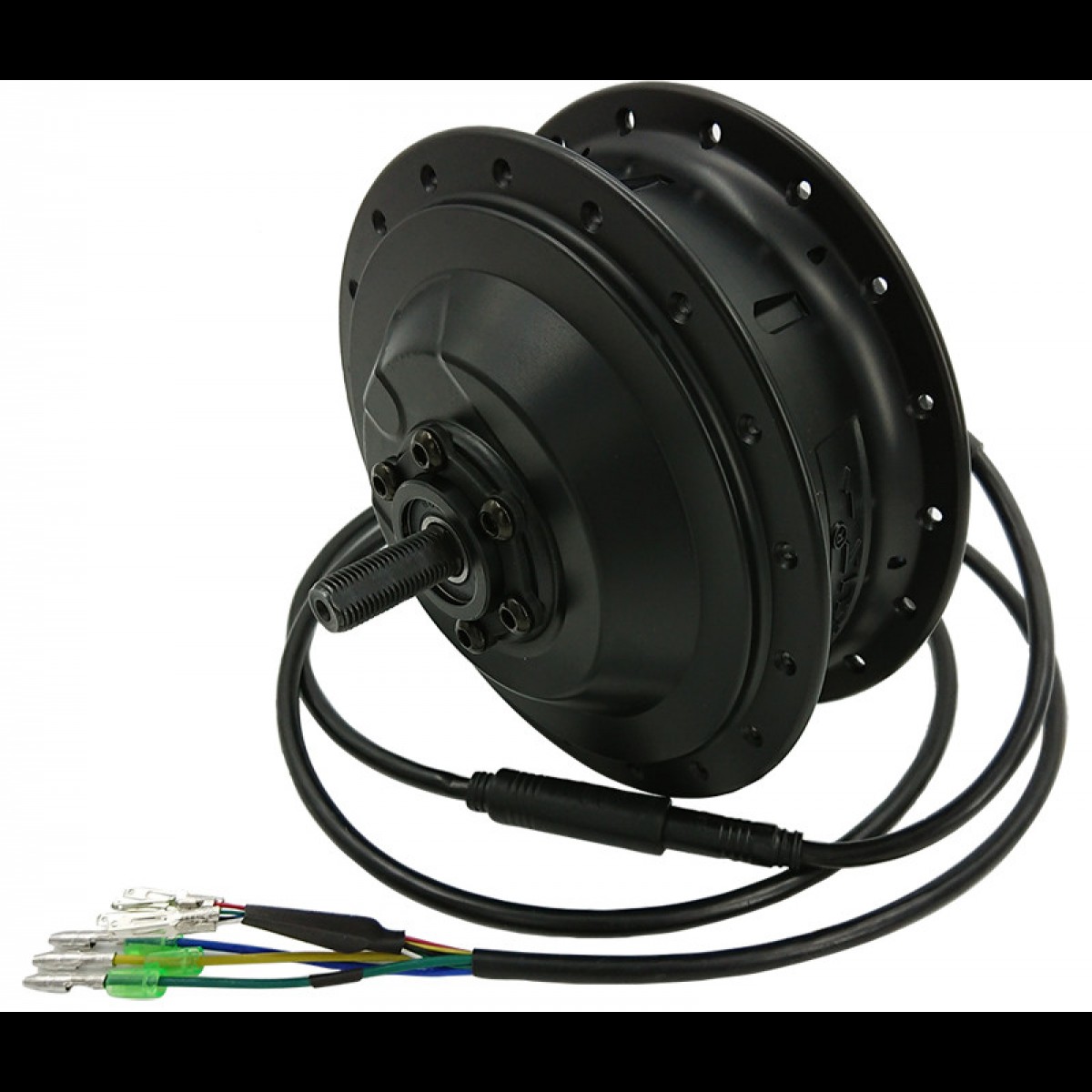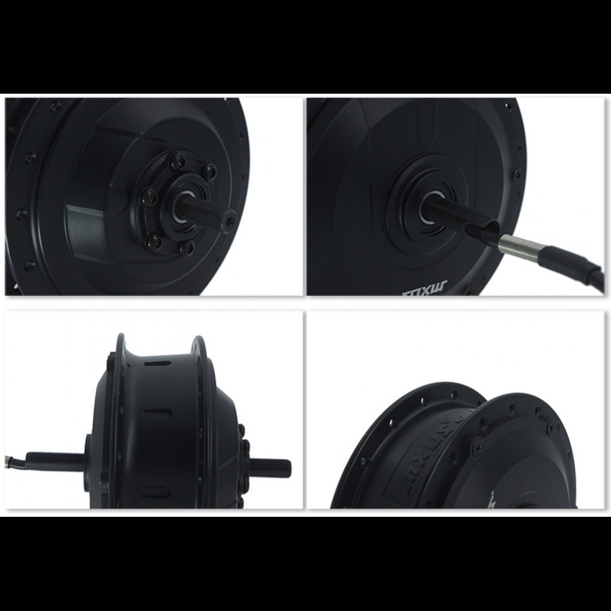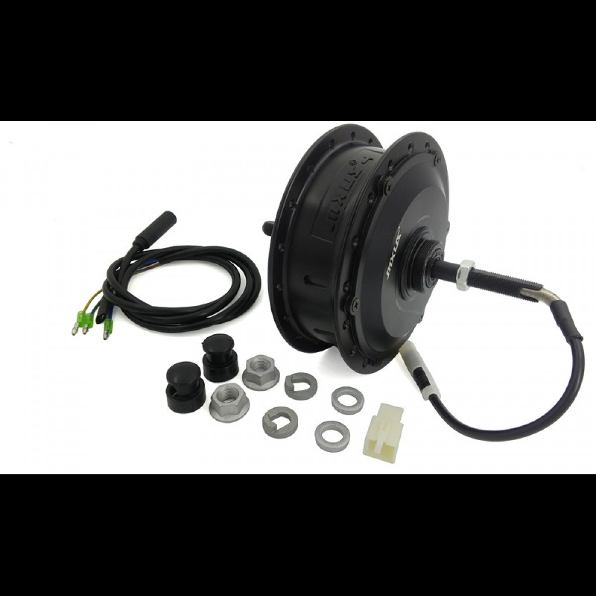 - заспицьоване посиленими спицями у двостінний посилений алюмінієвий обід безщіткове, з планетарним редуктором, на постійних магнітах для встановлення на передню або задню вісь велосипеда;