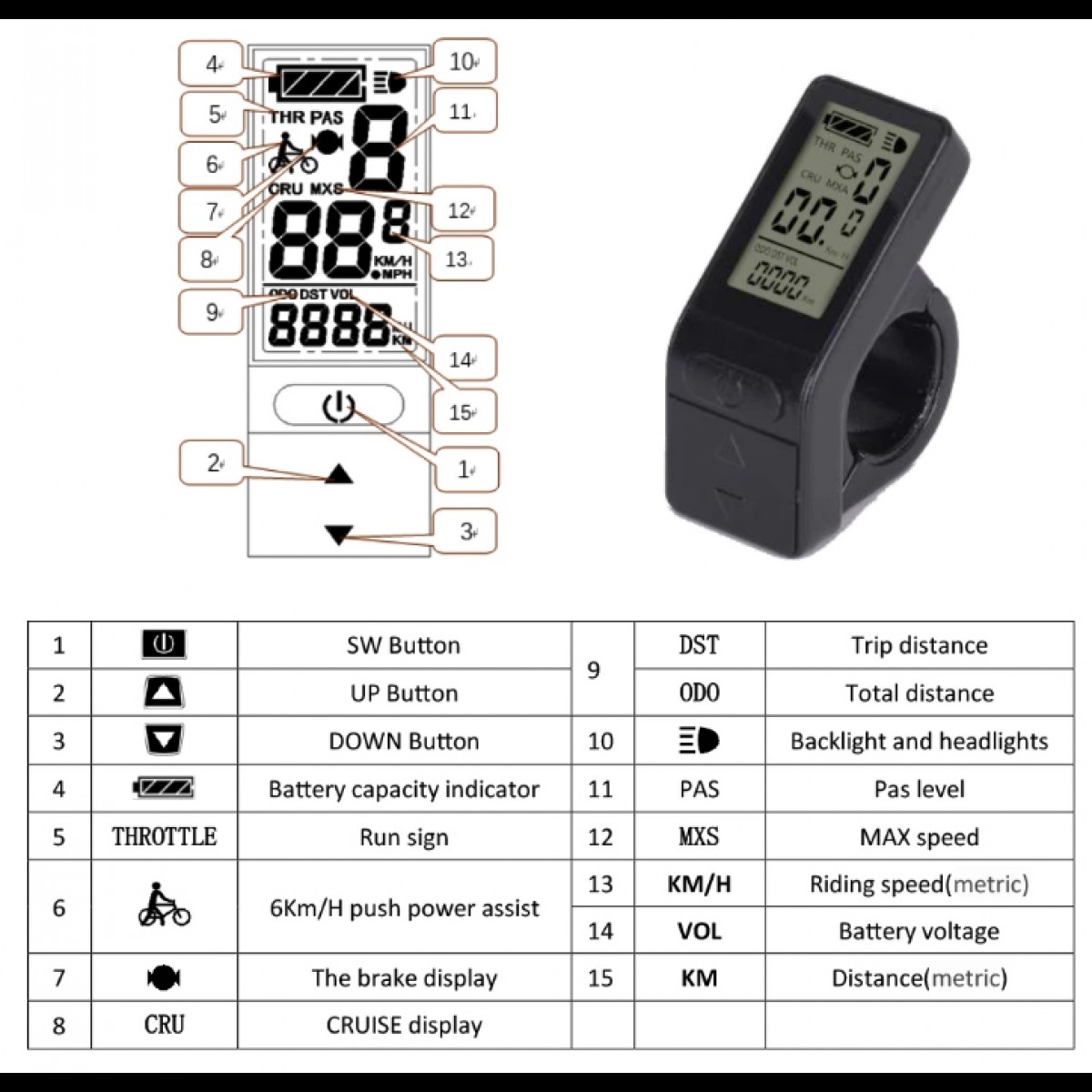 - Дисплей автоматично визначає напругу живлення (24, 36, 48 V)
