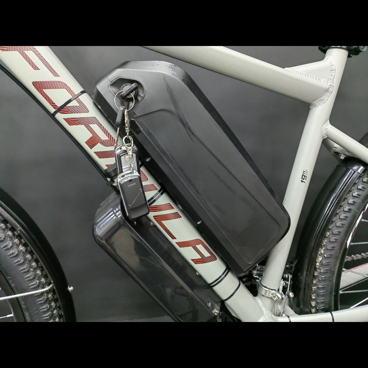 Акумулятор закріплено на рамі електровелосипеда, він легко знімається й при необхідності його можна забрати із собою.