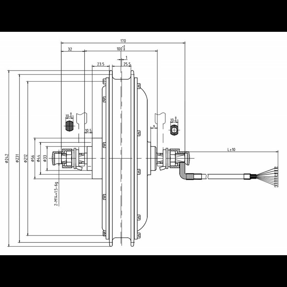 | Діаметр мотора | з фланцями для установки спиць: 242 мм по центрах отворів для спиць: 231 мм |