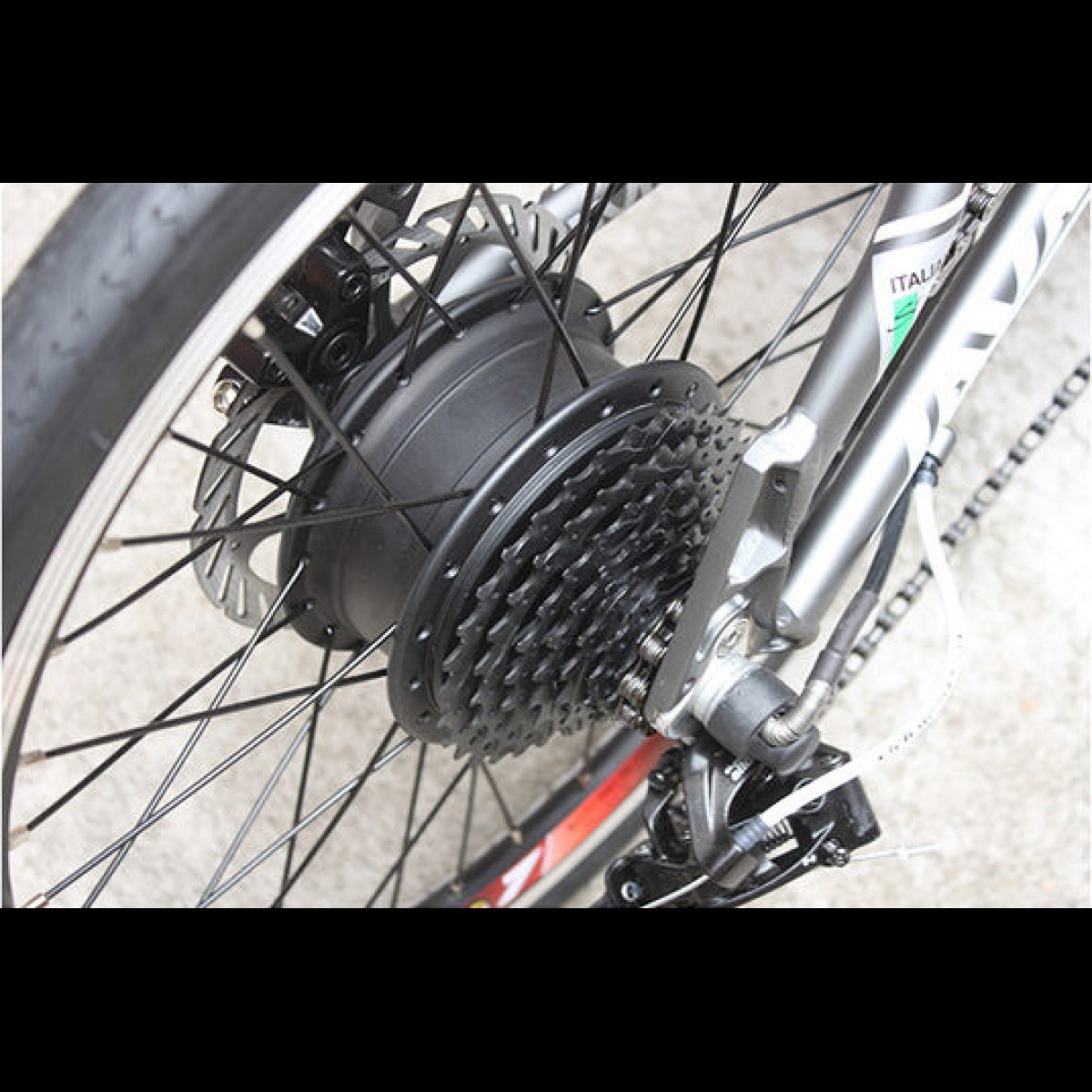 Редукторне мотор-колесо потужністю 350 ватт розраховане під найбільш поширені 36-спиць обода діаметром від 20 до 29".