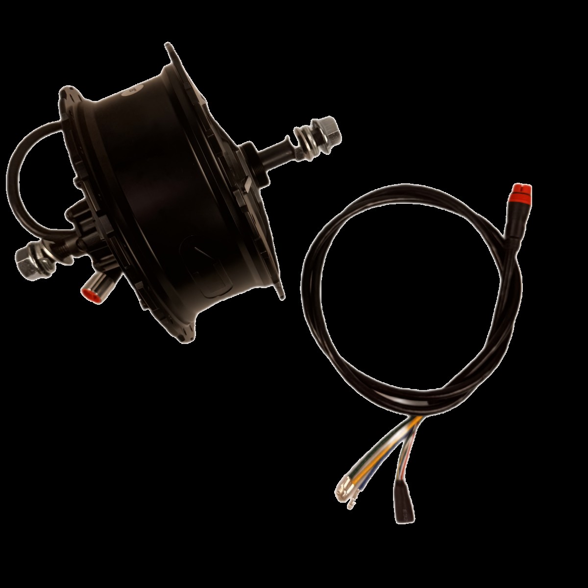 Редукторне мотор-колесо потужністю 1200 ватт розраховане під найбільш поширені 36-спиць обода діаметром до 29 ".